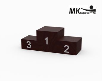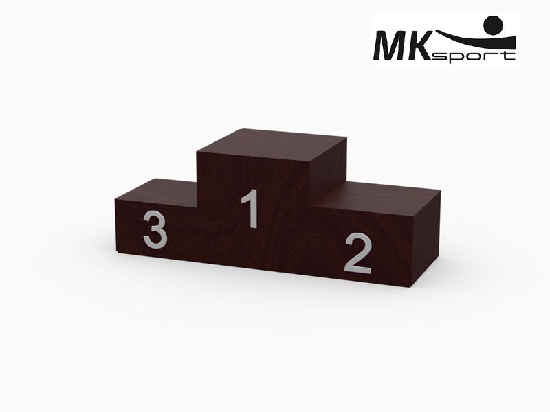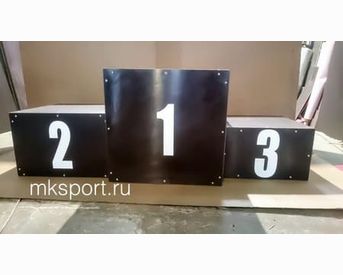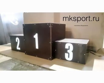 Компактный пьедестал почета для индивидуального награждения. Каждая тумба рассчитана на одного человека. Общая длина пьедестала – 1,64 м. Каркас подиума изготовлен из профильной трубы 40*20*2 мм и обшит влагостойкой ламинированной фанерой 9 мм. Маркировка пьедестала выполнена самоклеящейся ПВХ пленкой белого цвета.